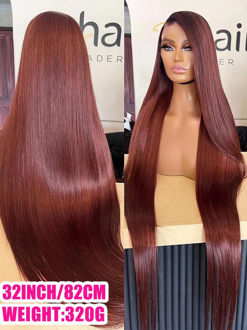 32 Inch Burgundy Long Straight Wigs for Women, Gorgeous Fluffy Wigs without Bangs, Synthetic Lace Front Wigs for Party, Daily Use, Birthday Outfits 2024 Glueless Wigs
