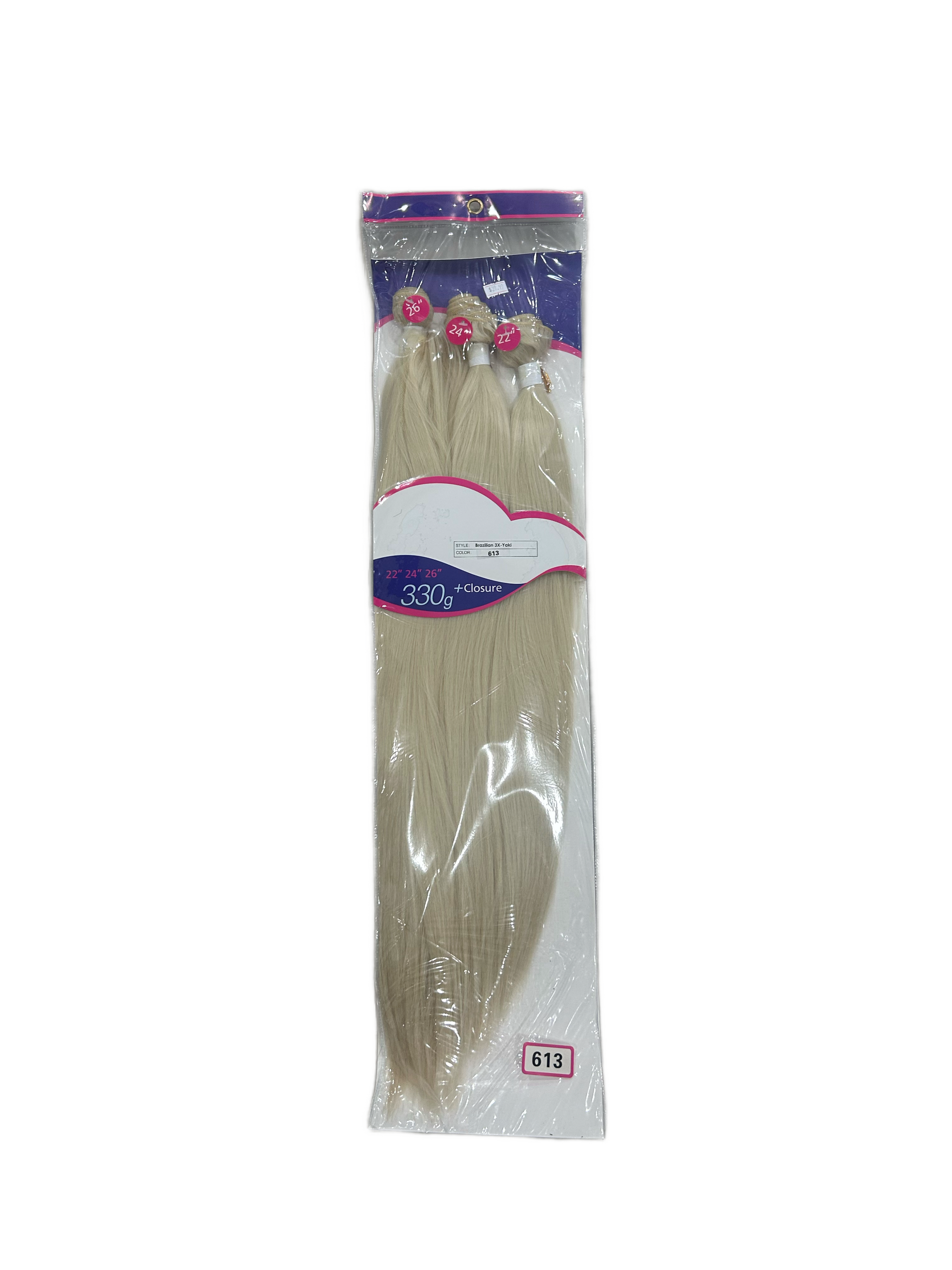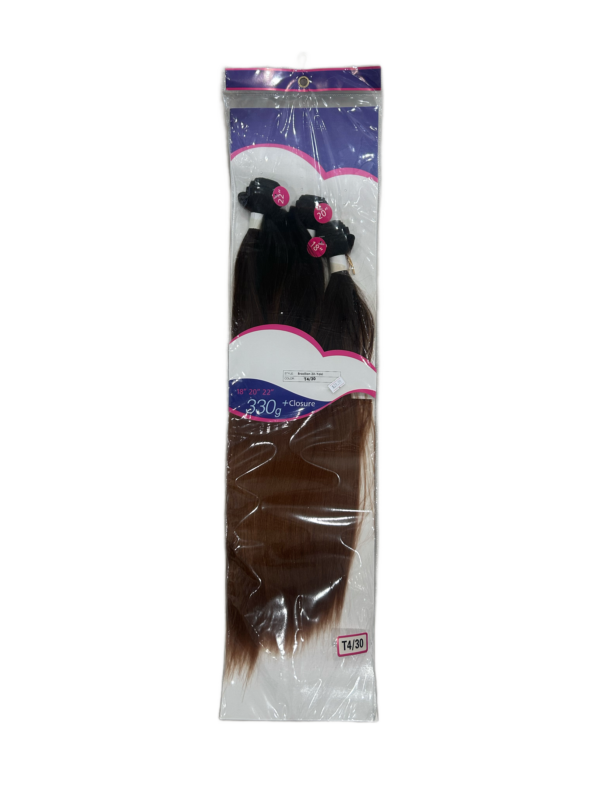 Brazilian 3X- Yaki Synthetic Hair Bundles 330g + closure