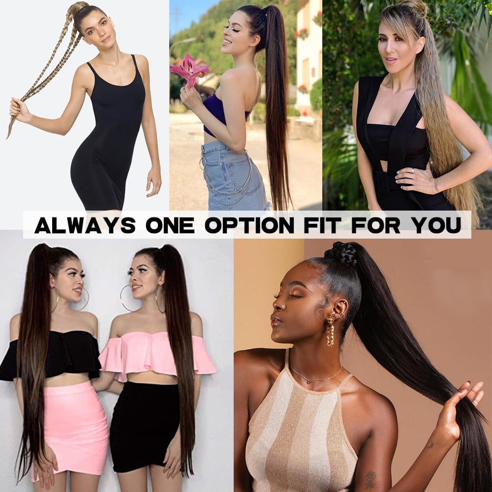 Elevate your hairstyle with our stunning Long Straight Wrap Around Clip In Ponytail Hair Extension. Designed with high-temperature resistant synthetic fiber, this ponytail extension is not just stylish but also durable, allowing you to flaunt your look without worry. Whether you're heading to a party, a casual outing, or simply want to switch up your day-to-day style, this extension is the perfect solution.