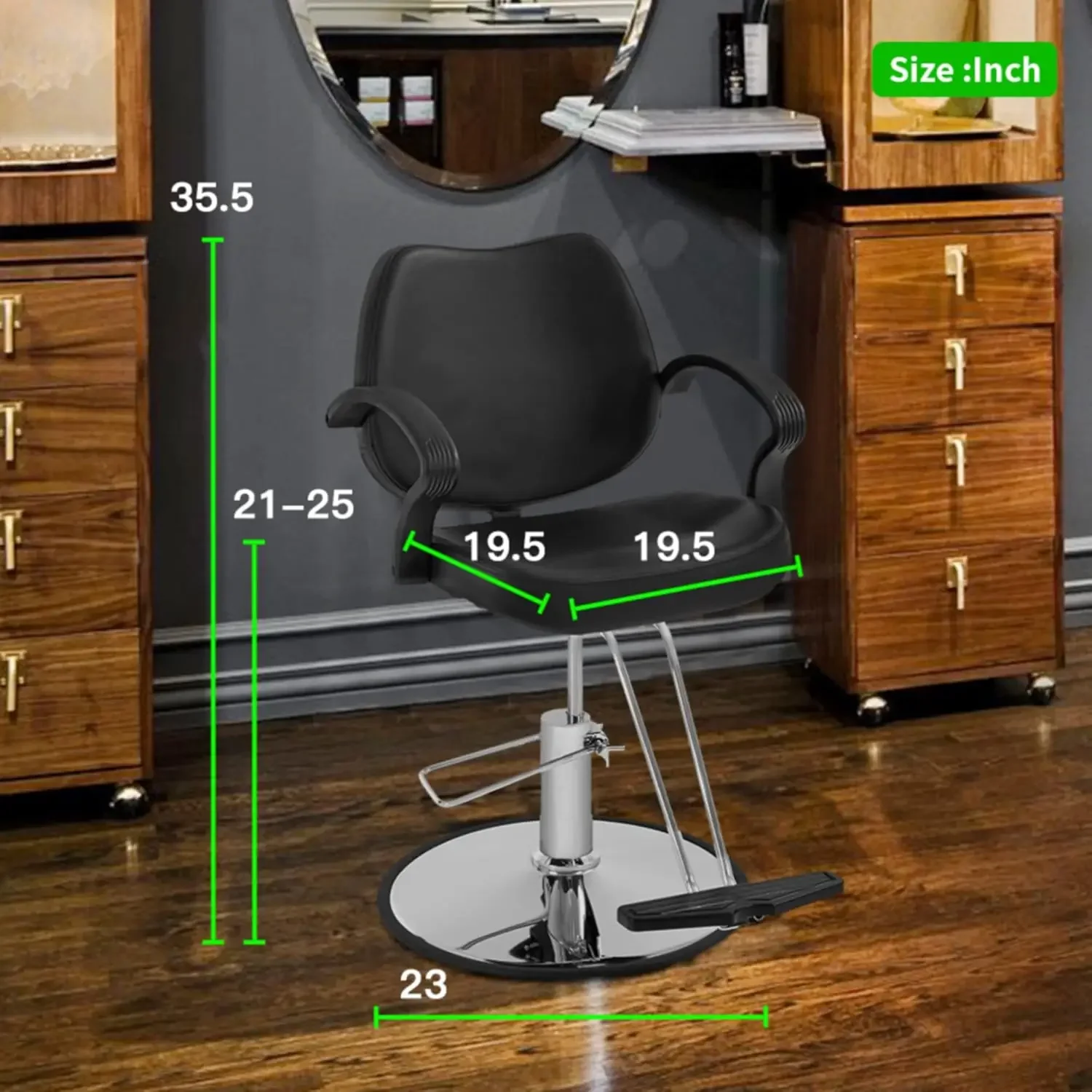 - CONVENIENT ADJUSTMENT METHOD: This styling chair features a high-strength hydraulic pump that makes height adjustments effortless and smooth. By simply stepping on the lifting rod, you can easily raise the chair without having to step on the base each time. When it's time to lower the chair, simply step on the base for a quick and easy transition.